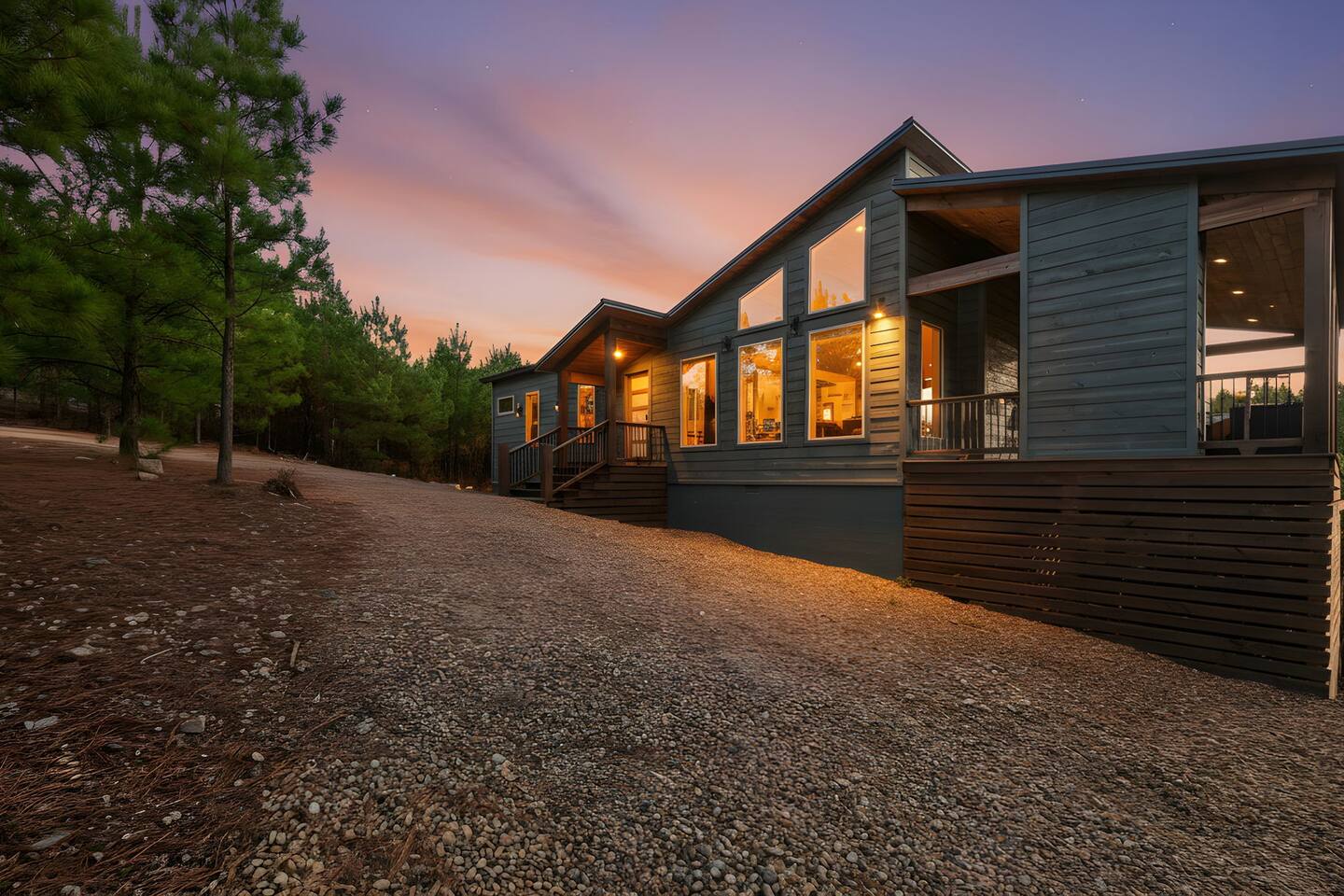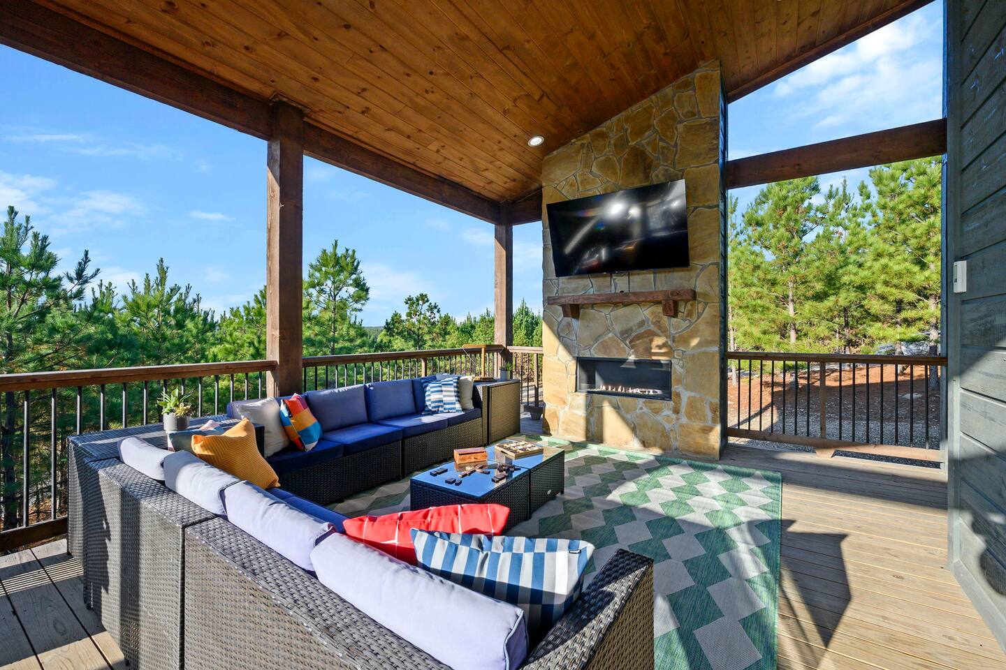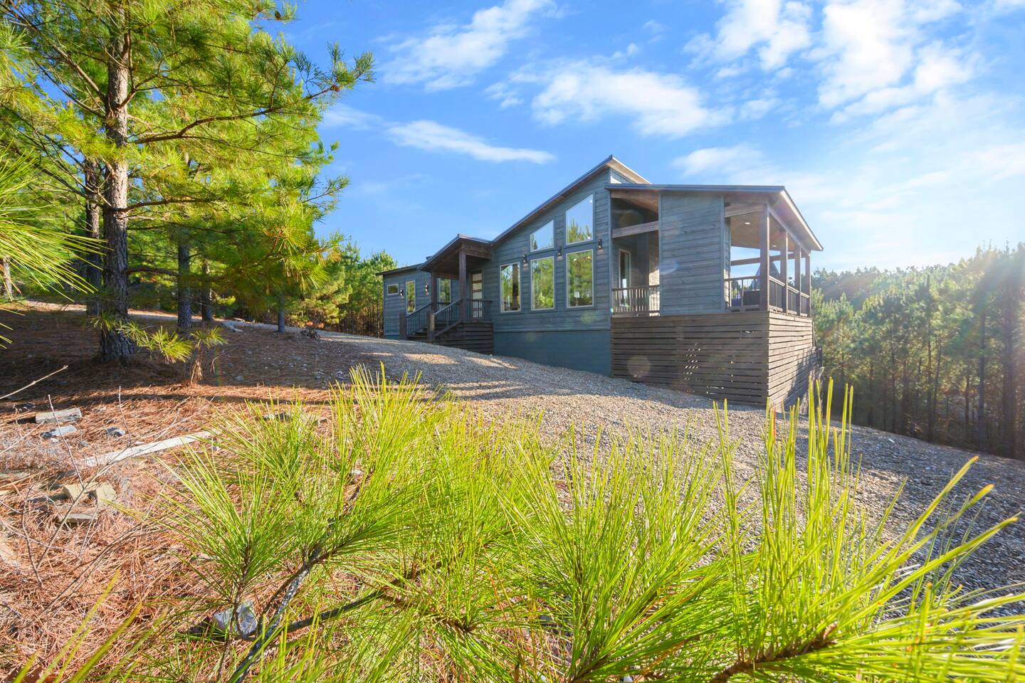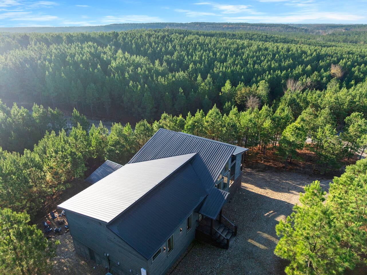 Step into Walking on Sunshine, a modern Broken Bow cabin with sweeping forest canopy views where every detail is crafted for comfort, style, & serenity. 10 minutes from Beaver Bend State Park & Choctaw Landing Casino. Highlights & Amenities • Private sauna • Secluded hot tub • Expansive forest canopy views • Outdoor living with dining area and fireplace • Fire pit • Spa-style bathrooms • Gourmet kitchen • Smart TVs in every room • High-speed WiFi • Fully stocked coffee bar